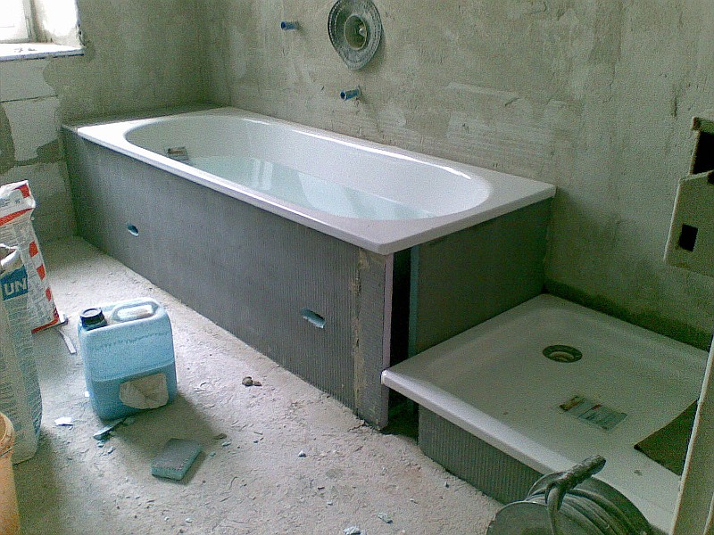 3.) Wie auf zwei der Bilder zu erkennen ist, machen die Elektroleitungen dem Parkettleger – wie er mir sagte, mir wäre es ja um die Wahrheit zu sagen gar nicht aufgefallen – etwas Probleme. Der Elektriker hat dieselben nicht tief genug verlegt weshalb nun an einigen Stellen eine etwas breitere Sockelleiste verlegt werden muss. Das ist natürlich nicht sehr schön, läst sich nun aber leider nicht mehr ändern, da anonsten alle bereits verputzten Wände wieder aufgerissen werden müssten. Dies ist ein Versäumnis des Elektrikers, der hätte wissen müssen, bzw. hätte daran denken müssen die Leitungen entsprechend tief zu legen.